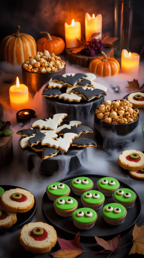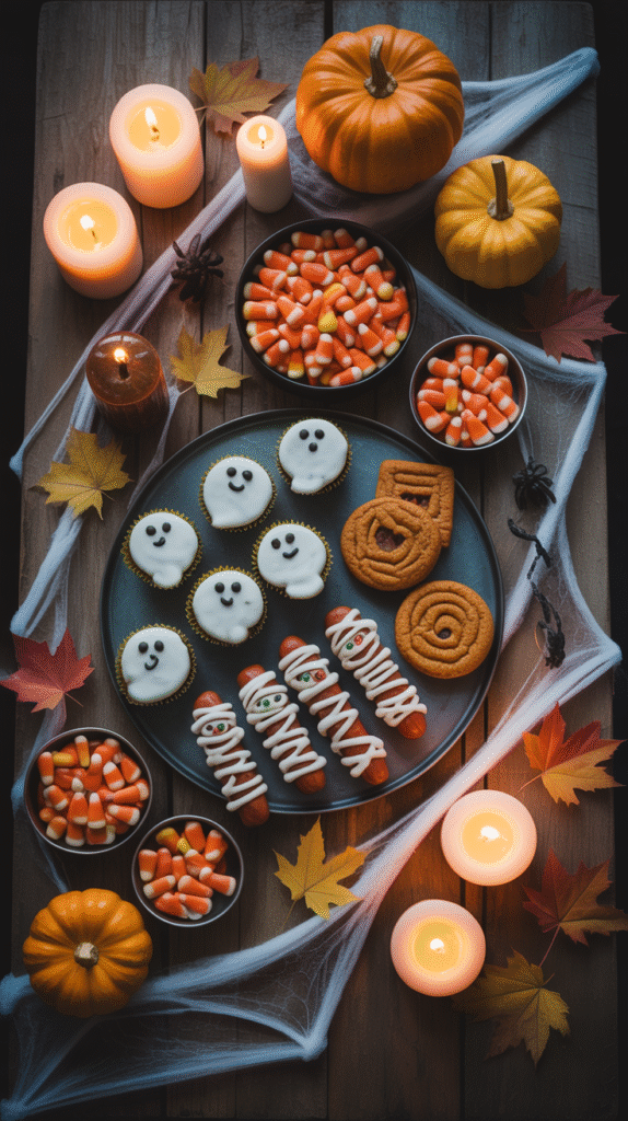 Halloween food board décor, spooky party platter ideas, aesthetic Halloween table setup 2025